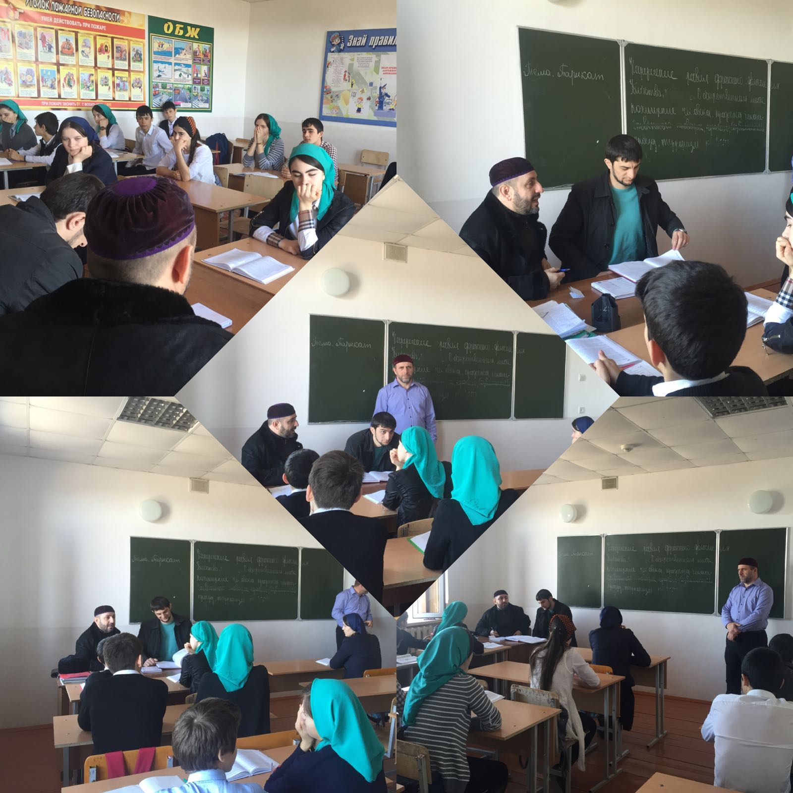 02.03.2016О проведении беседы с учащимися МБОУ «Дышне-Веденская СОШ им. Загаева А.А.» Тема: «Конституция ЧР» Участники: 1.представители духовенства - Джафаров Арби –Кадий Веденского района -Хадисов Салман – сотрудник министерства Чеченской Республики по делам молодежи. 2. Зам.по ВР. Класные руководители, Педагог- организатор по ДНВ Учащиеся 5-11 кл.