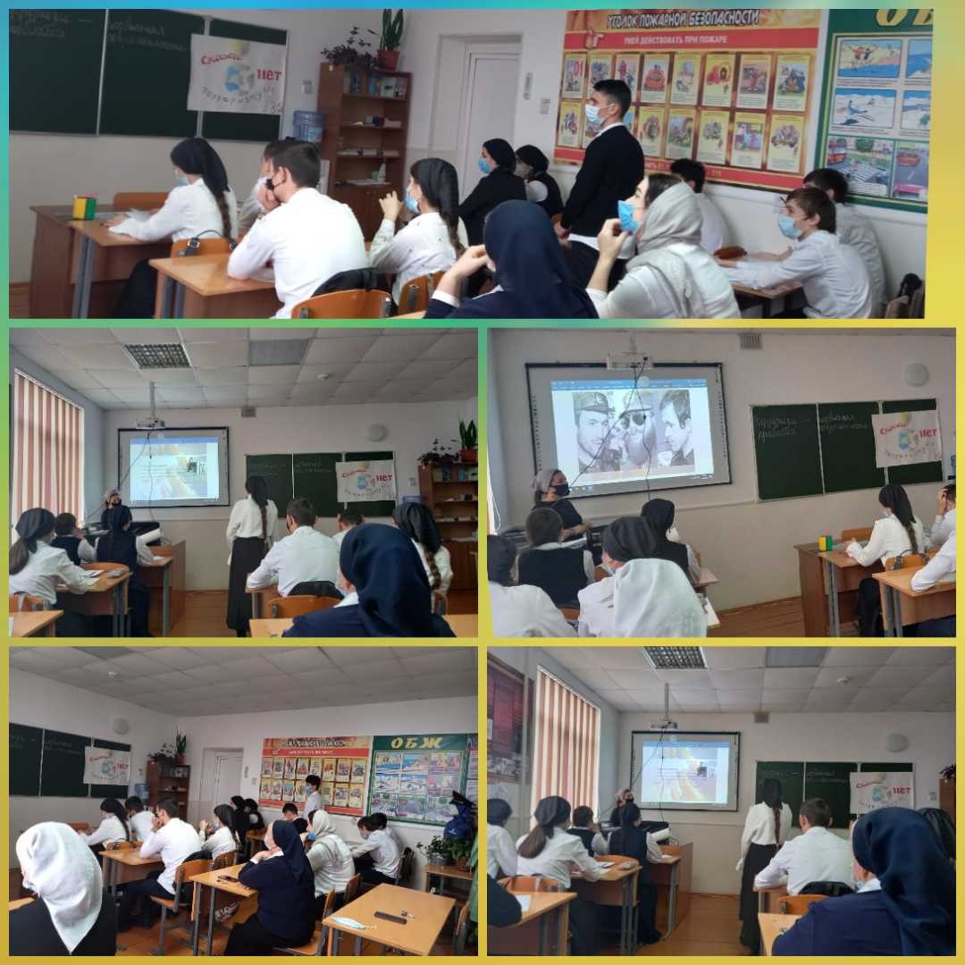 В МБОУ "Дышне-Веденская СОШ им. Загаева А.А." в 10 классе был проведен открытый урок на тему: "Терроризм его причины последствия" Урок провел учитель ОБЖ Алиева Э.Р.