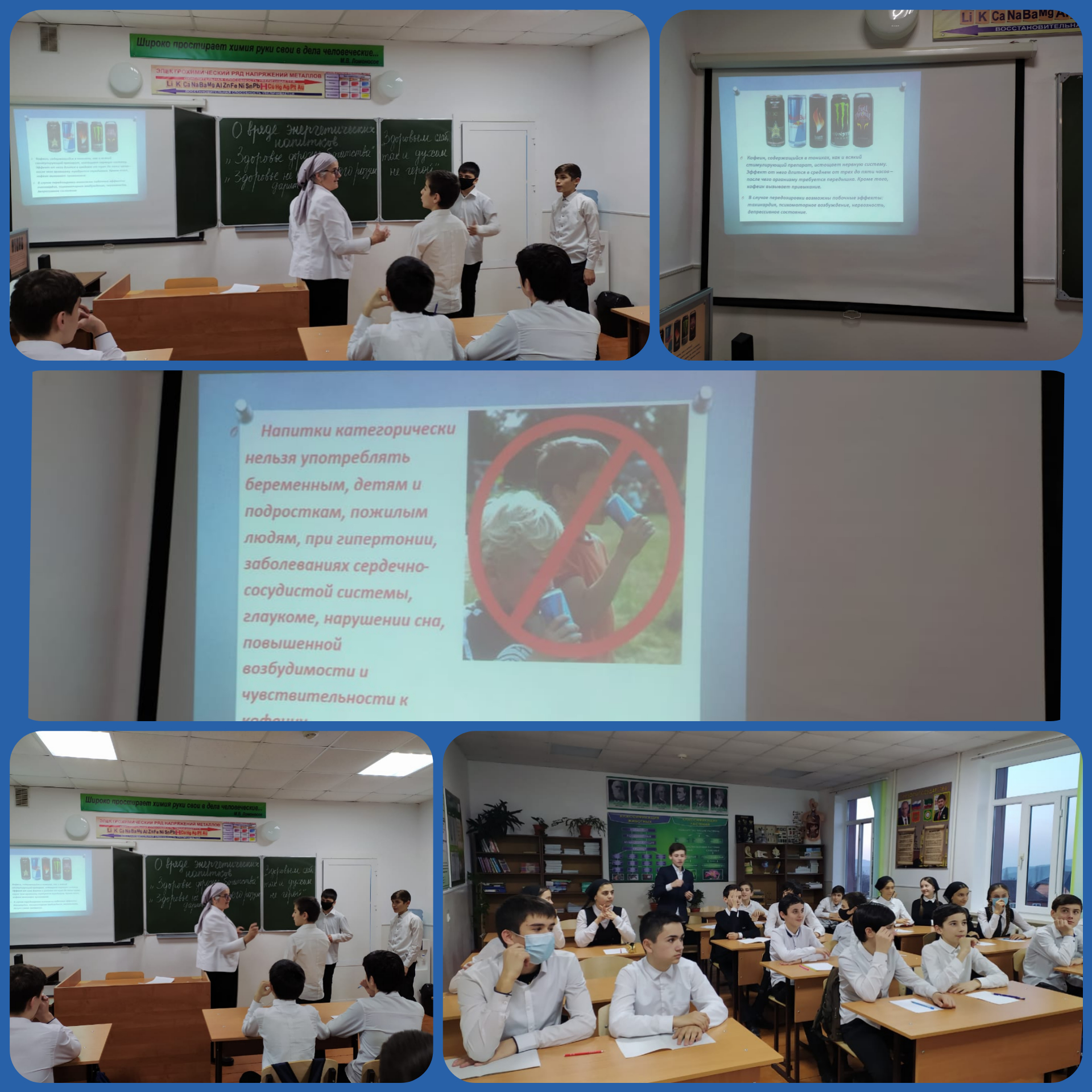 В 8 «Б» классе под руководством Тураевой Р.С. был проведен классный час: «О вреде Энергетических напитков». Цель классного часа: Способствовать формированию у обучающихся навыков критического мышления и осмыслению ими отрицательных последствий употребления энергетических напитков.