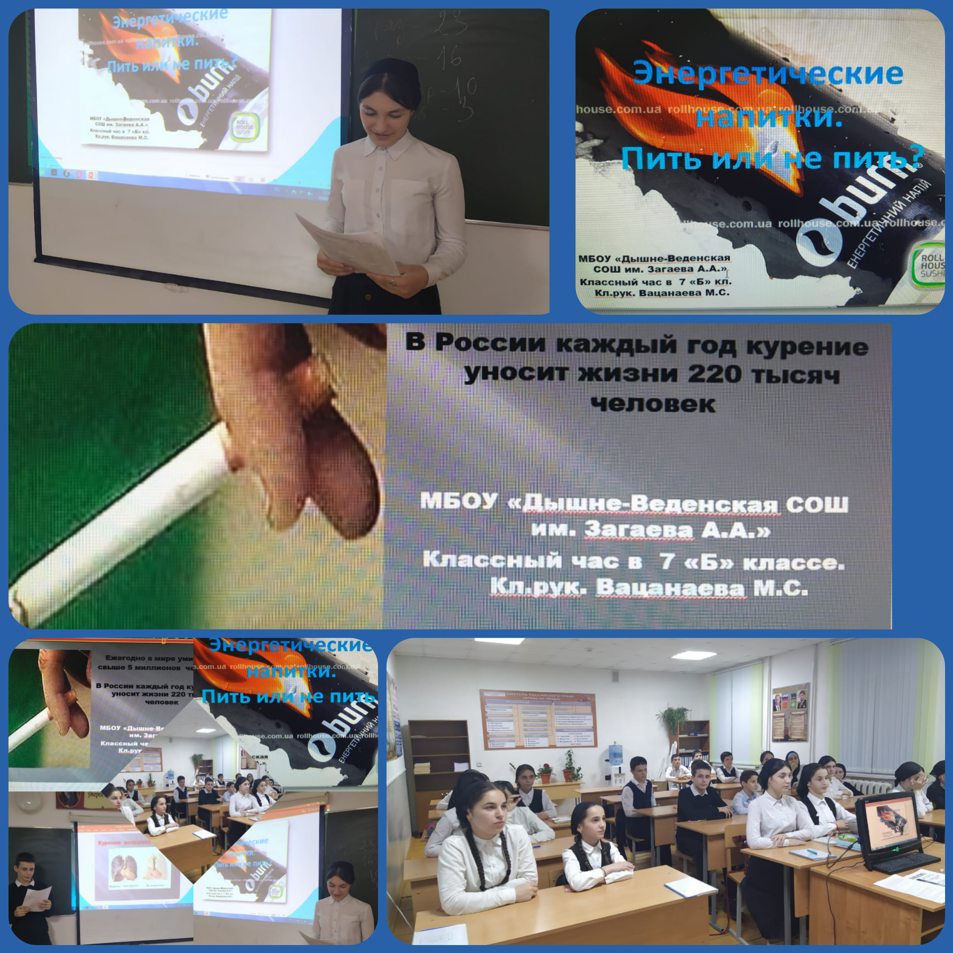 12.02.2021В 7 «Б» классе под руководством Вацанаевой М.С. был проведен классный час: «О вреде Энергетических напитков». Цель классного часа: