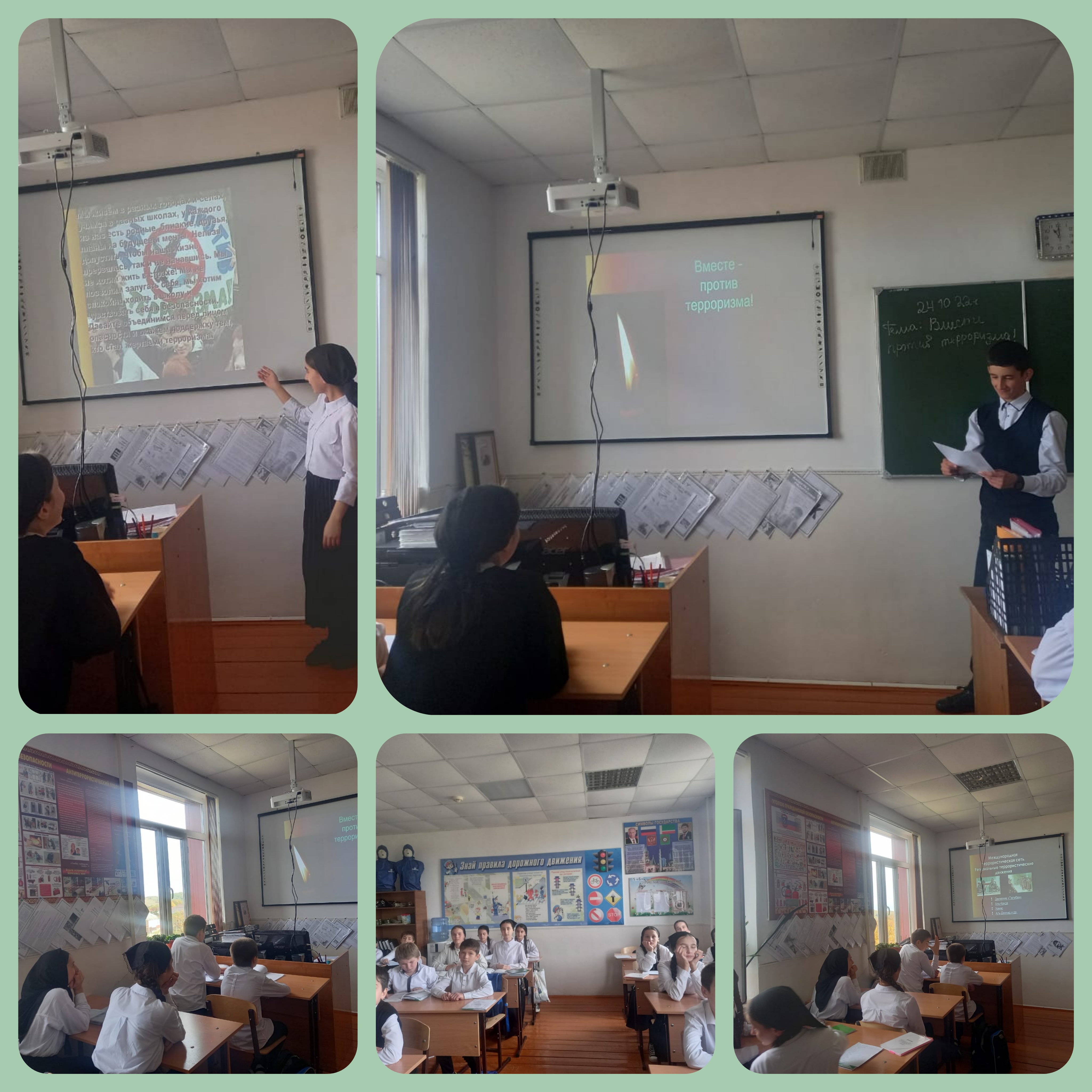 15.10.202214 октября 2022 года в МБОУ «Дышне-Веденская СОШ им. Загаева А.А.» в связи с проведением всероссийского мероприятия «День солидарности в борьбе с терроризмом» проведено мероприятие «Терроризм не пройдет!»