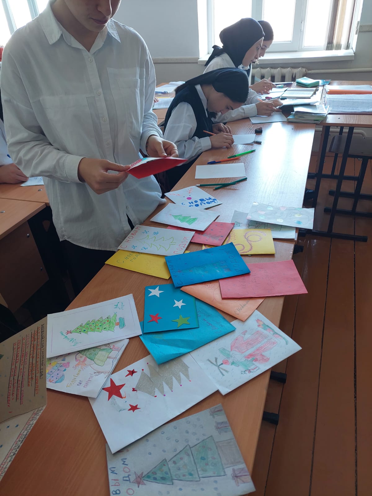 В МБОУ "Дышне-Веденская СОШ им. Загаева А.А." прошла акция «Открытка солдату» к Новому году, 2-11 классов приняли участии подготовили красочные поздравительные открытки для военнослужащих участвующих в СВО. Ребята ответственно и патриотично отнеслись к данному мероприятию.