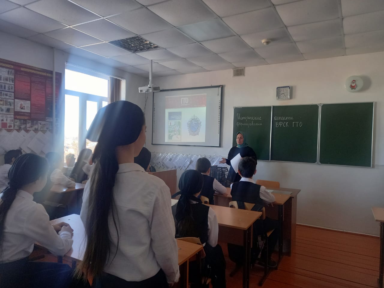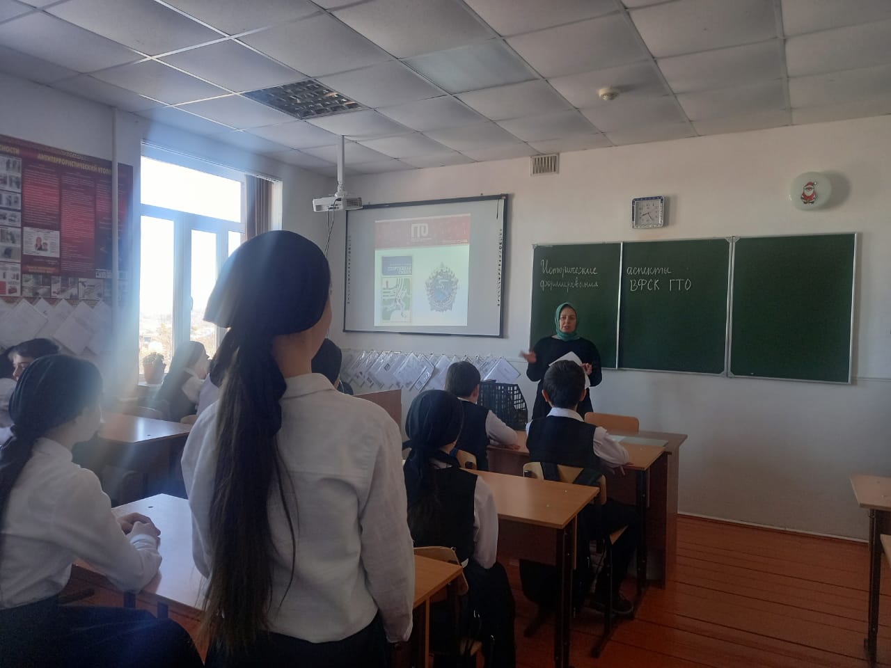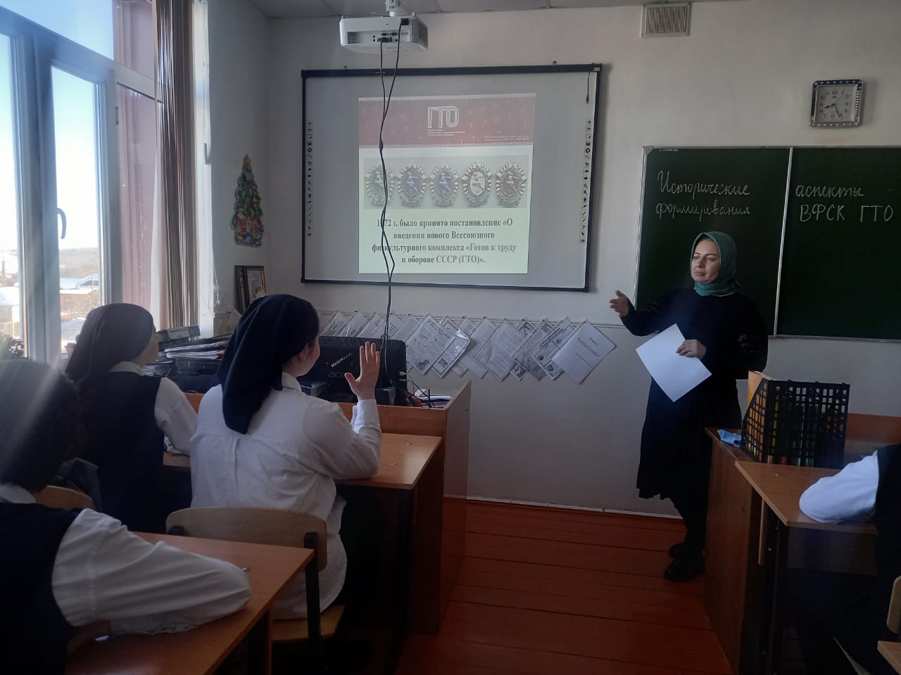 В МБОУ "Дышне-Веденская СОШ им. Загаева А.А." прошел всероссийском урок ВФСК ГТО.