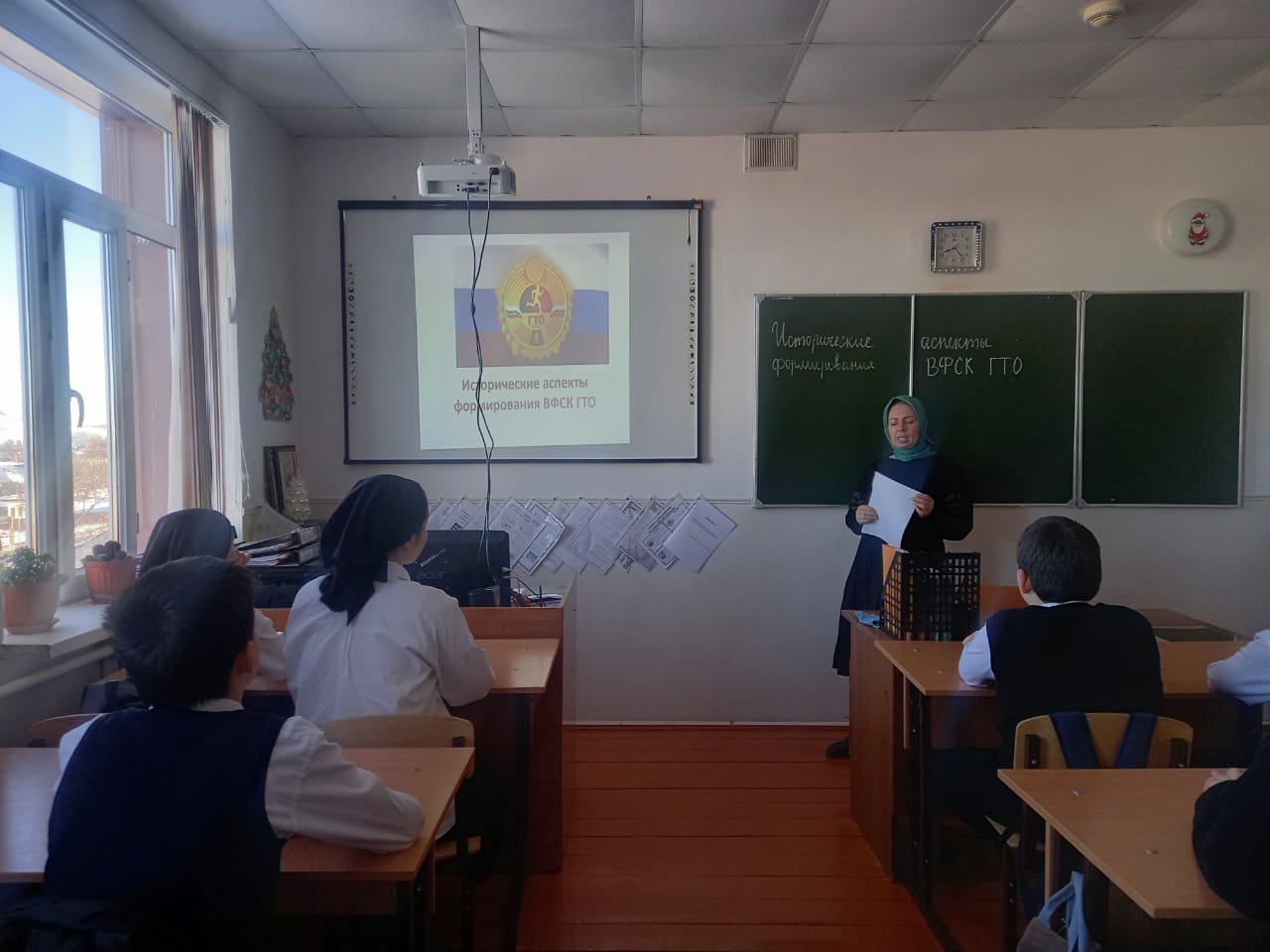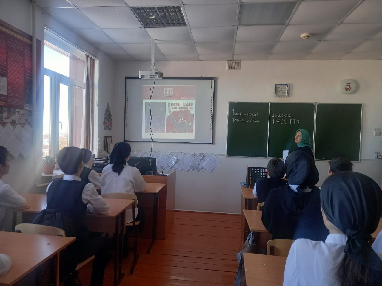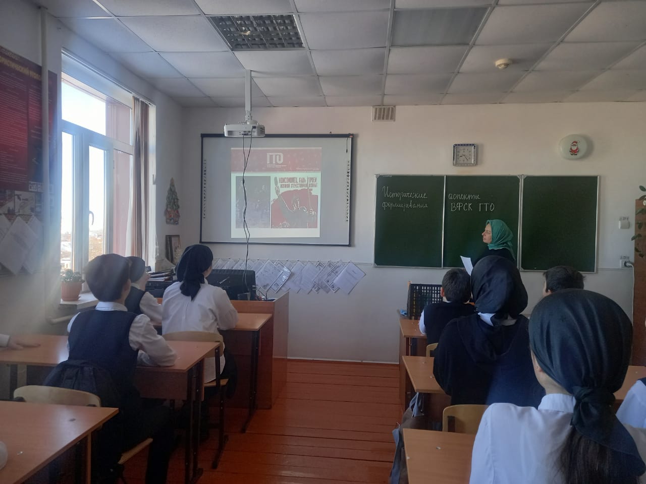 В МБОУ "Дышне-Веденская СОШ им. Загаева А.А." прошел всероссийском урок ВФСК ГТО.