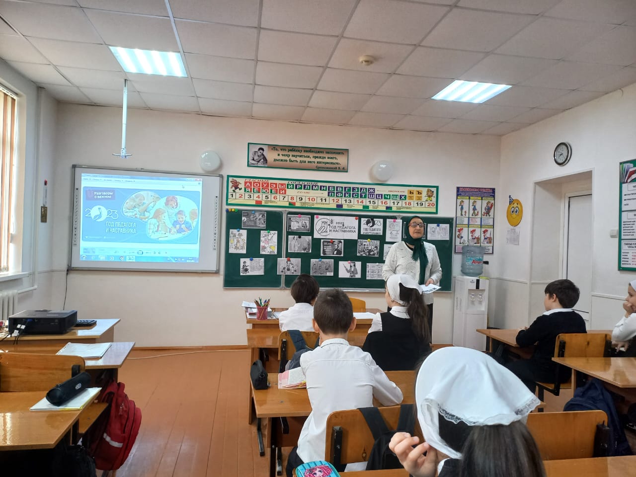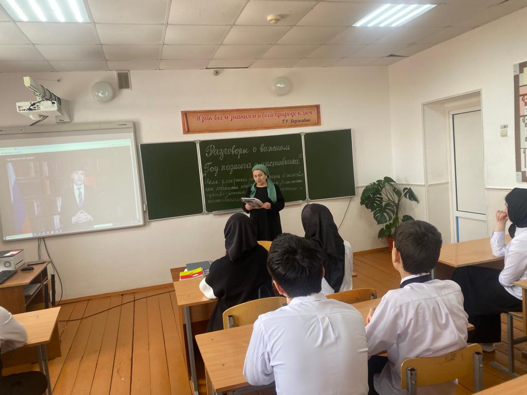 В МБОУ «Дышне-Веденская СОШ им. Загаева А.А.» состоялись очередные внеурочные занятия «Разговоры о важном» на тему: «Год педагога и наставника».