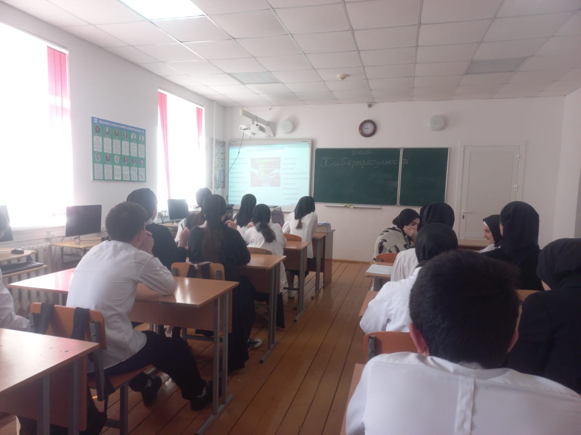 13.03.2023С 9 по 13 марта с учащимися 9 класса МБОУ «Дышне-Веденская СОШ им. Героя России Загаева А.А.» в рамках федерального проекта «Успех каждого ребёнка» национального проекта «Образование» учитель информатики Гацаева Разет Обушайховна провела очень интересный урок по теме «Киберпреступность».