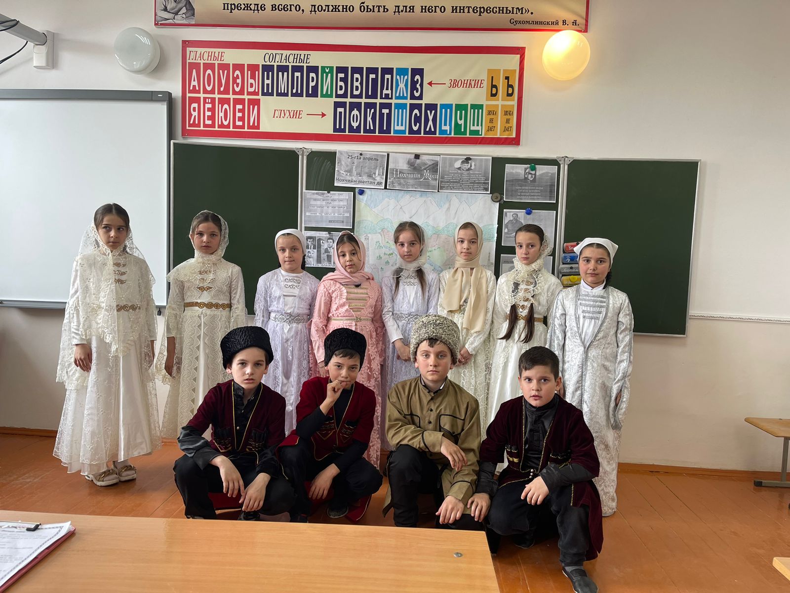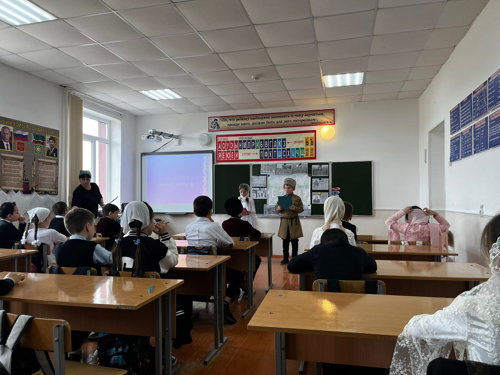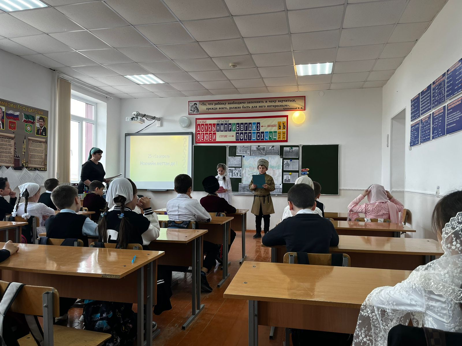 11.04.202311.04.2023 В МБОУ "Дышне-Веденская СОШ им. Загаева А.А. в 3 "б" классе проведена открытый классный час "Ко Дню чеченского языка". 25- г1а апрель, вайна ма-хаъара, нохчийн меттан деза де лерина ду.Таханалера вайн цхьанакхетар а нохчийн маттана лерина ду. Кхузахь вай юха а довзуьйтур ду, нохчийн мотт хаза а, оьзда а, хьалдолуш а хилар. Иштта довзуьйтур ду, вейшан мотт вайна безар, даима цуьнан сий дарца вай даха дезаш хилар а.