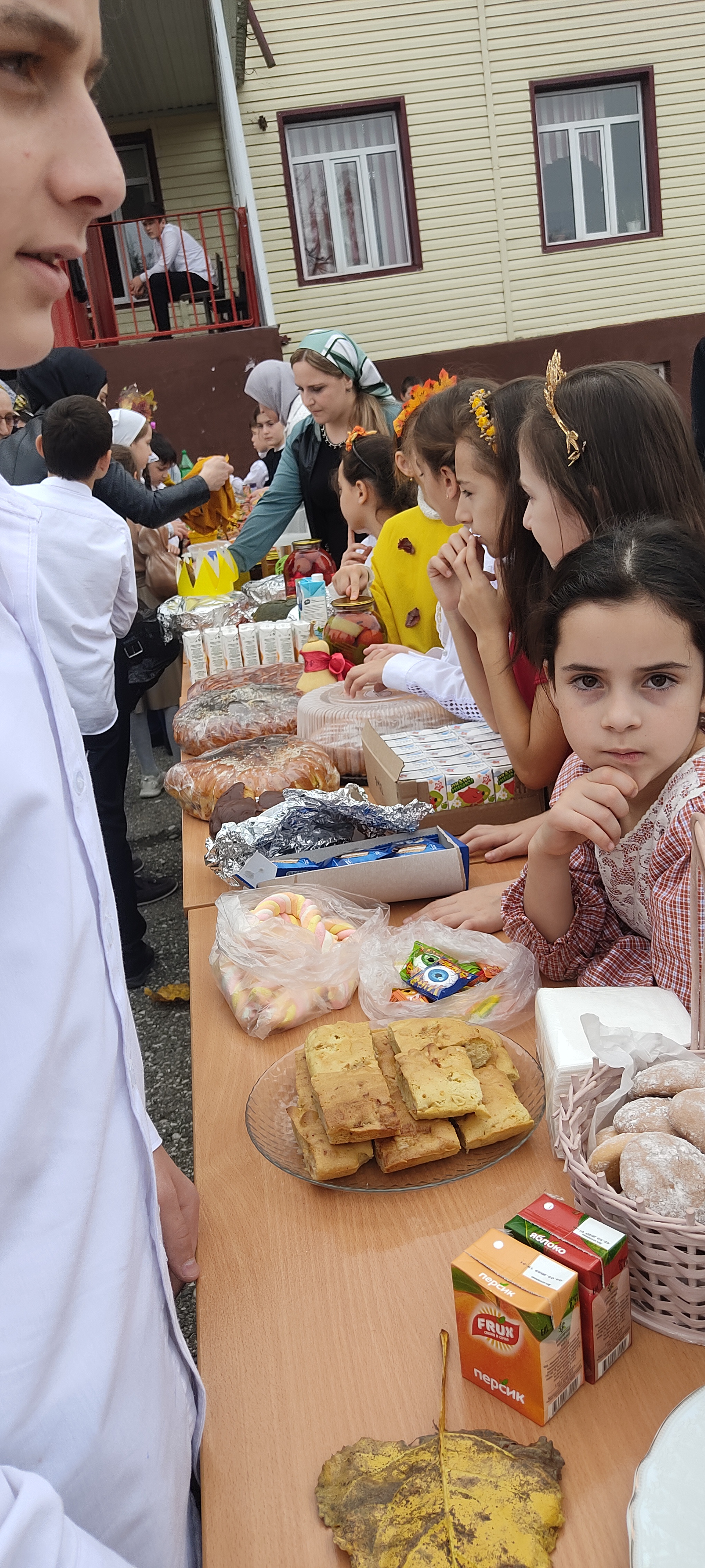 Во дворе школы собрались все учащиеся с 1 по 11 класс, учителя, администрация, родители. В течение полутора часов было раскуплено практически все. Каждый класс подсчитал свою прибыль и сделал свой взнос в наше общее дело.