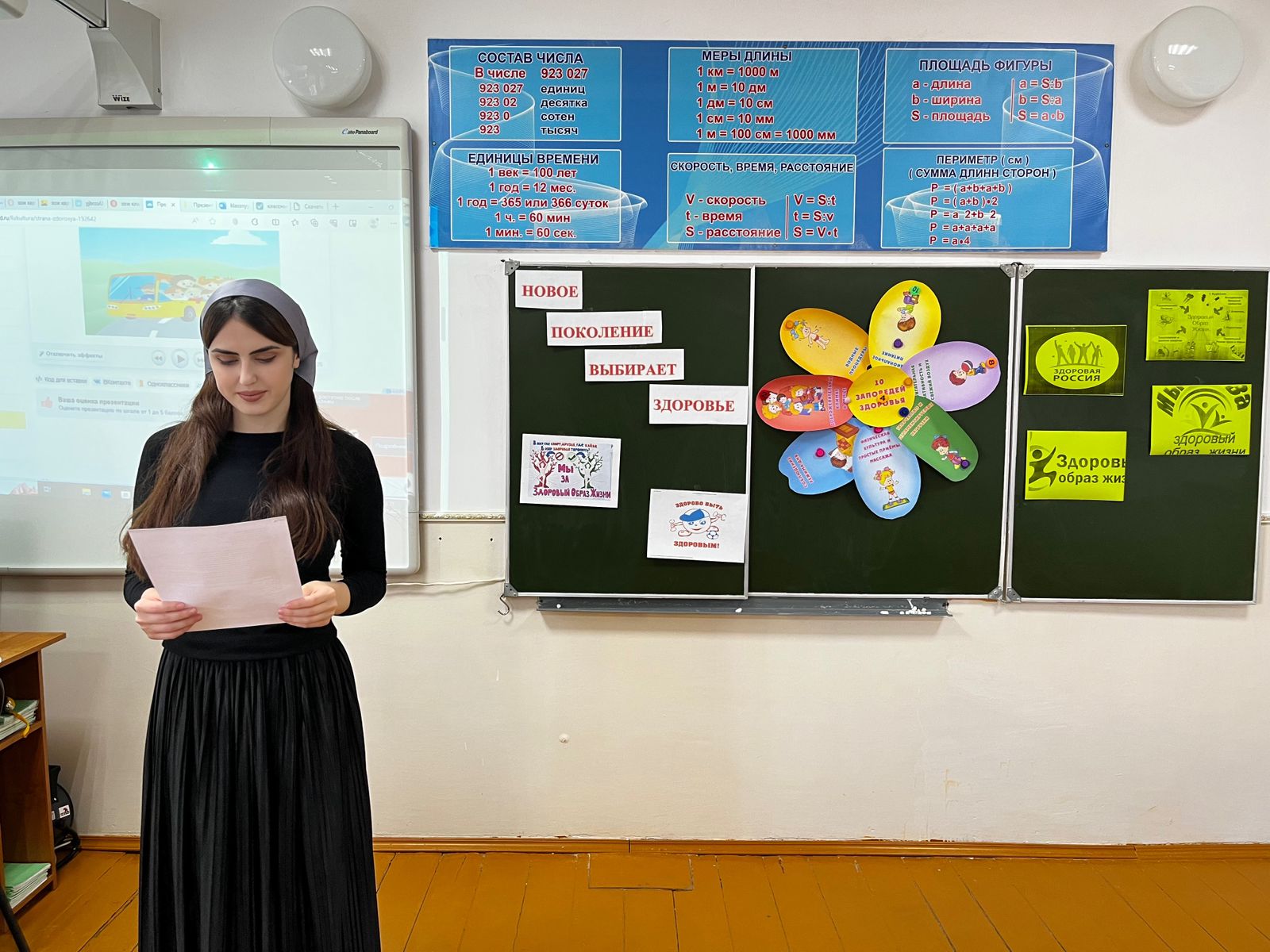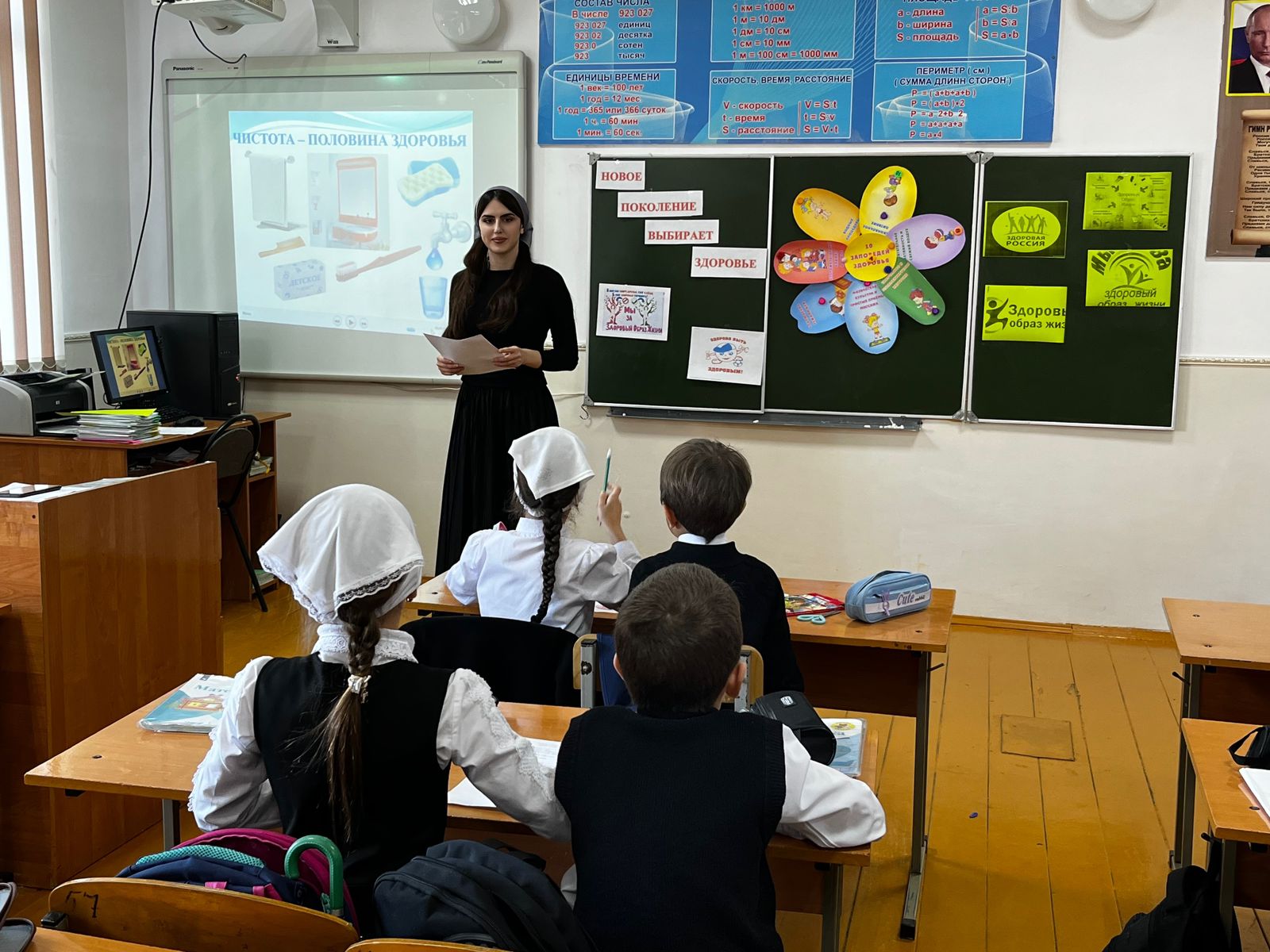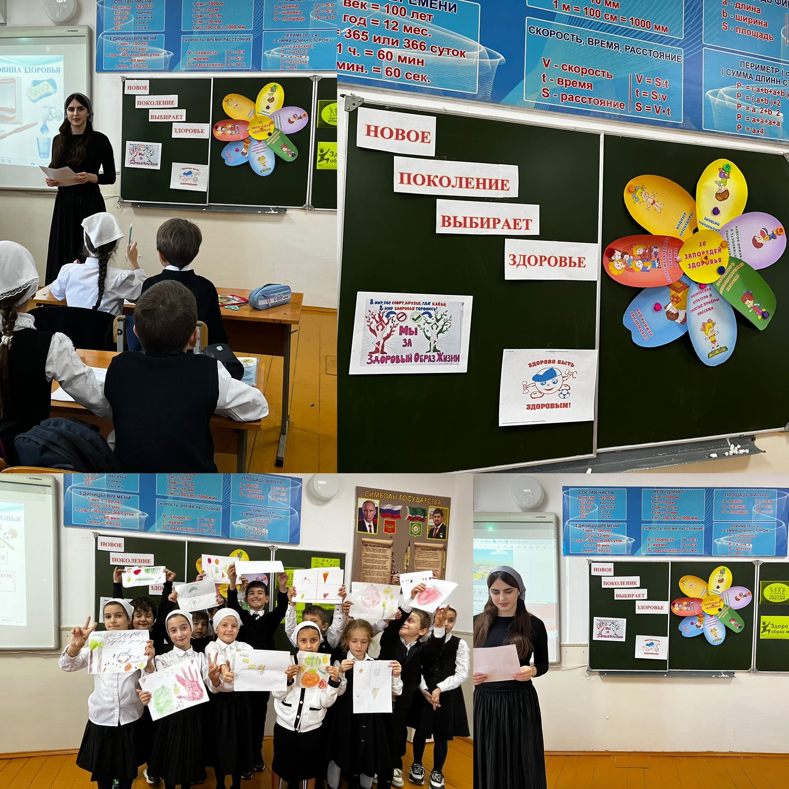 13.11.2023Во 2 "Б" классе Дышне-Веденской СОШ им. Загаева А.А." прошел открытый классный час на тему: «Новое поколение выбирает здоровье».На занятии обучающиеся:повторили правила здорового образа жизни;узнали о вреде пагубных привычек;участвовали в викторине, посвященной здоровому образу жизни.Во время беседы классный руководитель Куразова Л.С. формировала у ребят ответственное отношение к своему здоровью и здоровью окружающих.