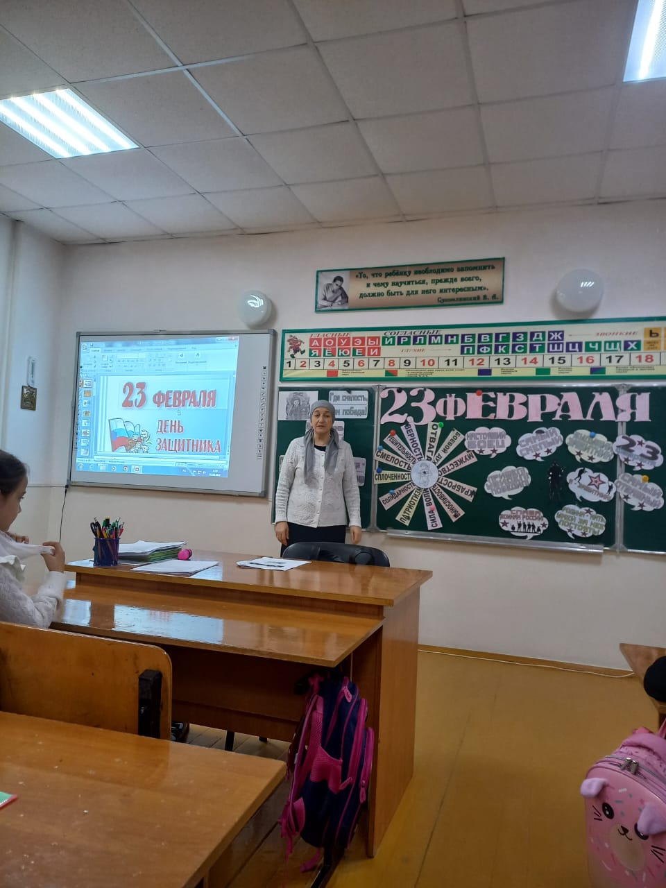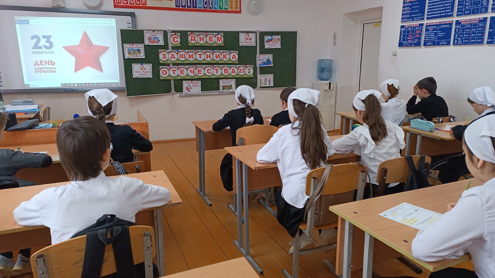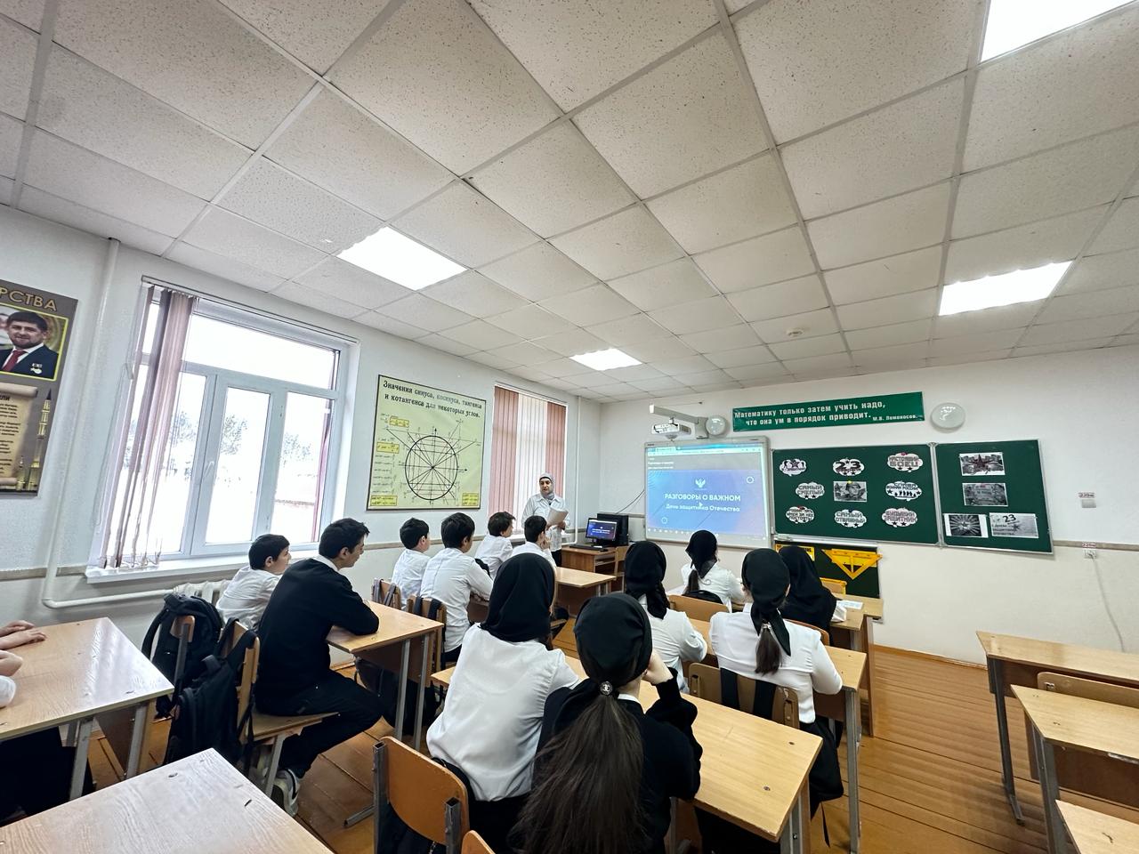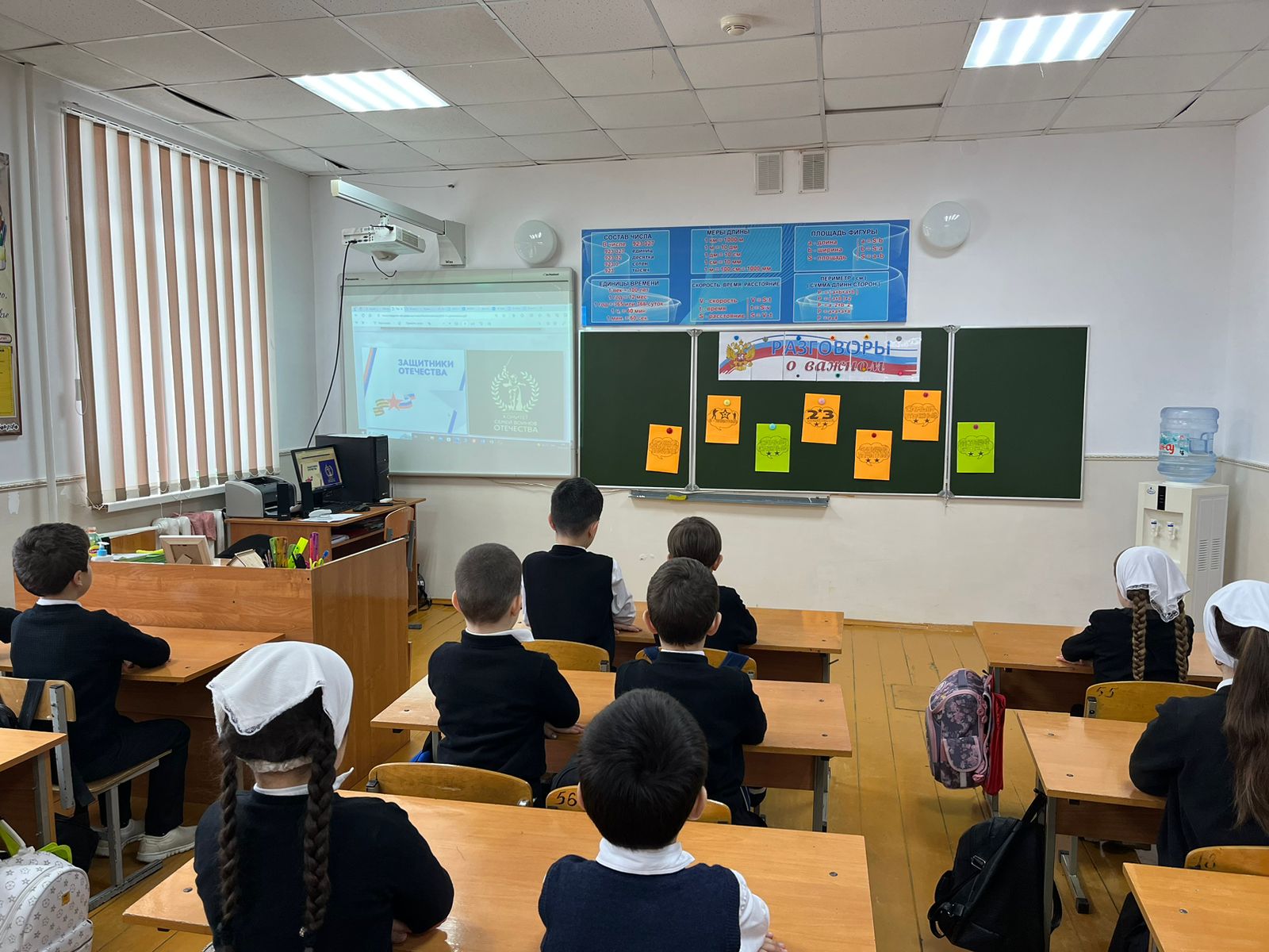 В МБОУ «Дышне-Веденская СОШ им. Загаева А.А.» состоялись очередные внеурочные занятия «Разговоры о важном» на тему: «День защитника Отечества».