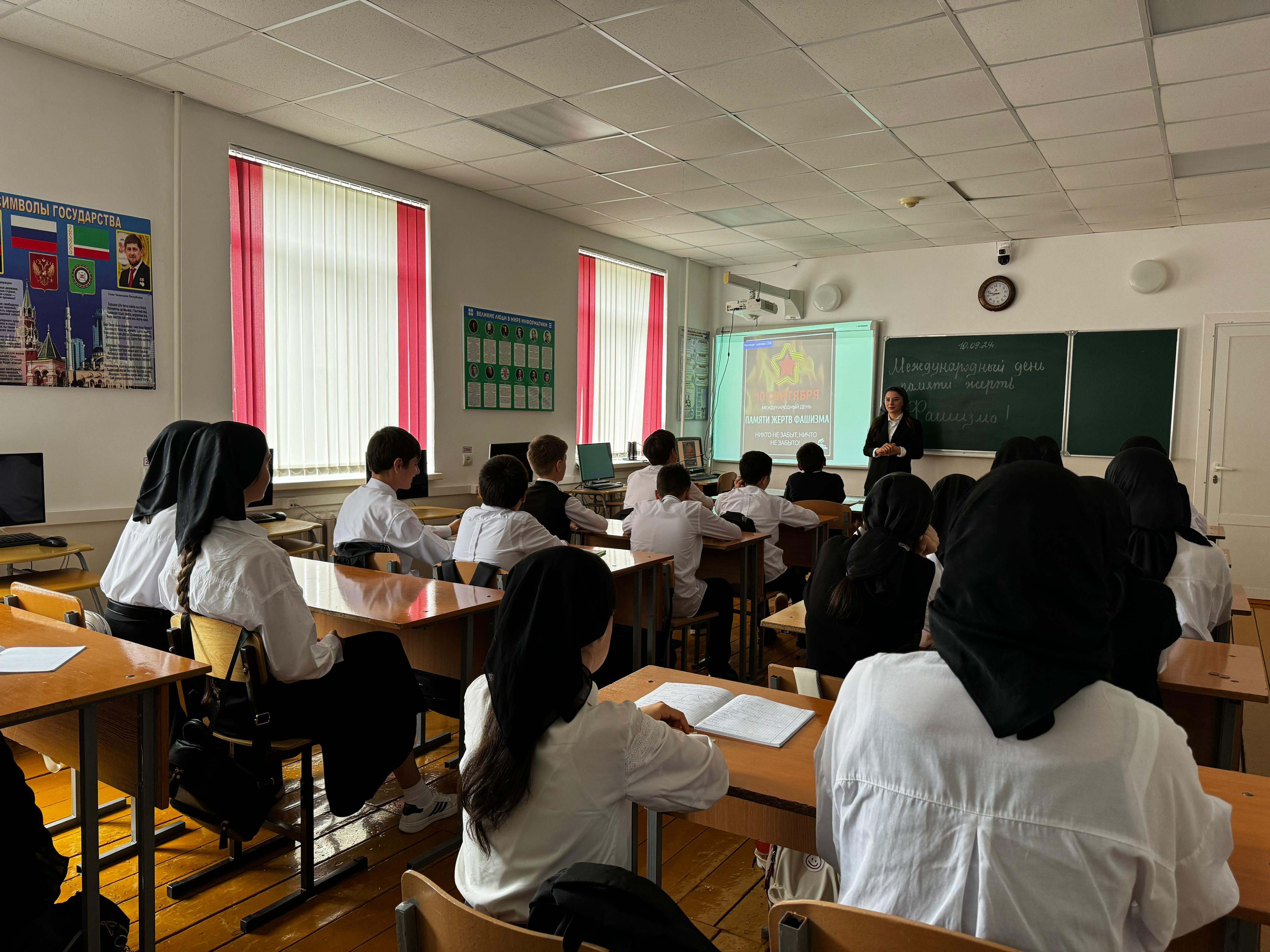 В этот день вспоминают не только тех, кто защищал Родину с оружием в руках, но и обычных людей, погибших от рук захватчиков. Сохранение этой памяти важно, ведь по мере того, как забываются ужасы войны, начинает возрождаться фашизм, а вместе с этим происходит оправдание действий военных преступников и искажение исторических фактов.В связи с этим советник директора по воспитанию Исиева Тамила Абдулбековна провела тематические уроки.Она рассказала учащимся об истории возникновения памятной даты и на конкретных примерах из истории нашей страны показала и рассказала о моментах, связанных с этим событием. Дети принимали активное участие в обсуждении, отвечали на вопросы.