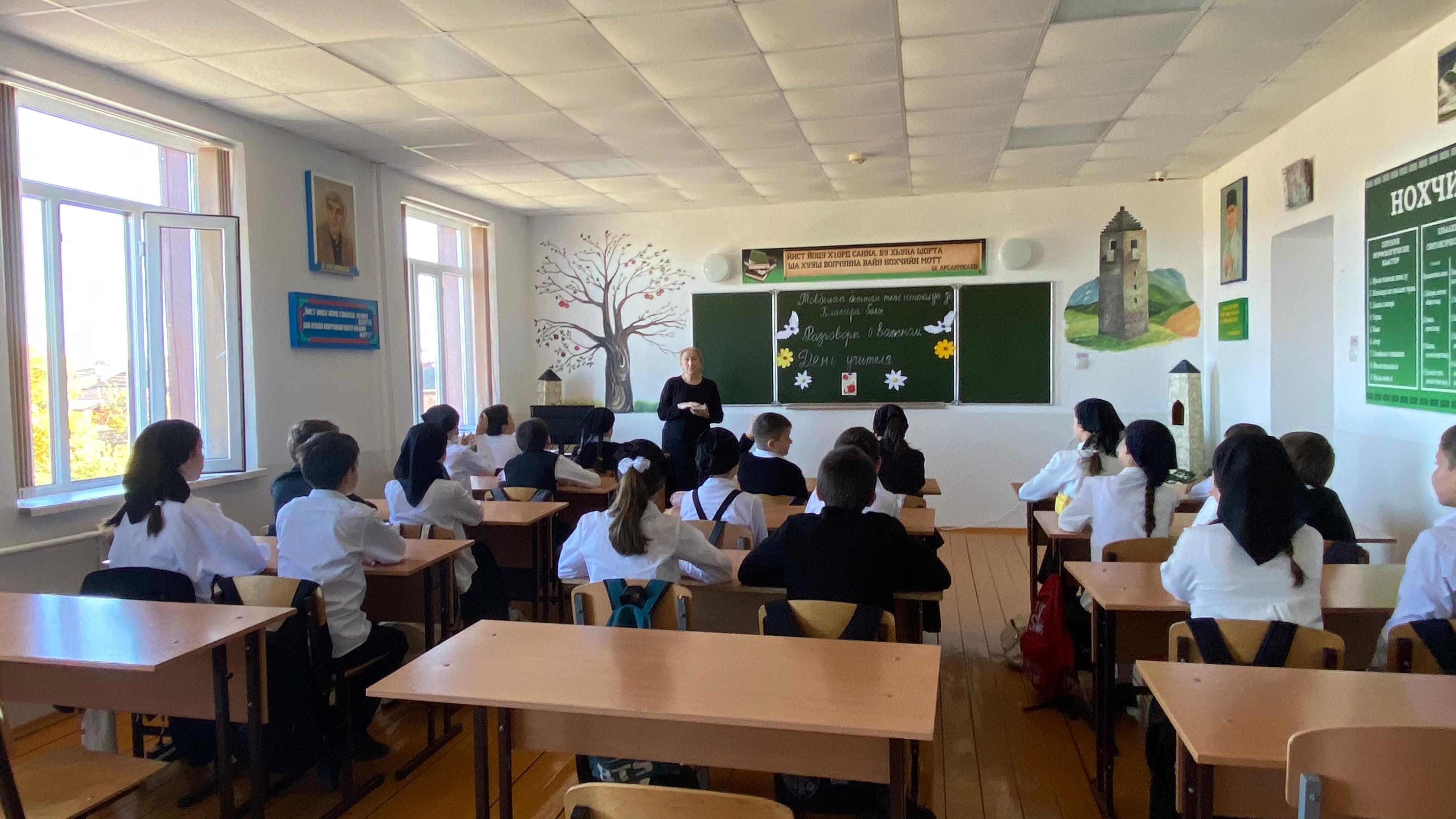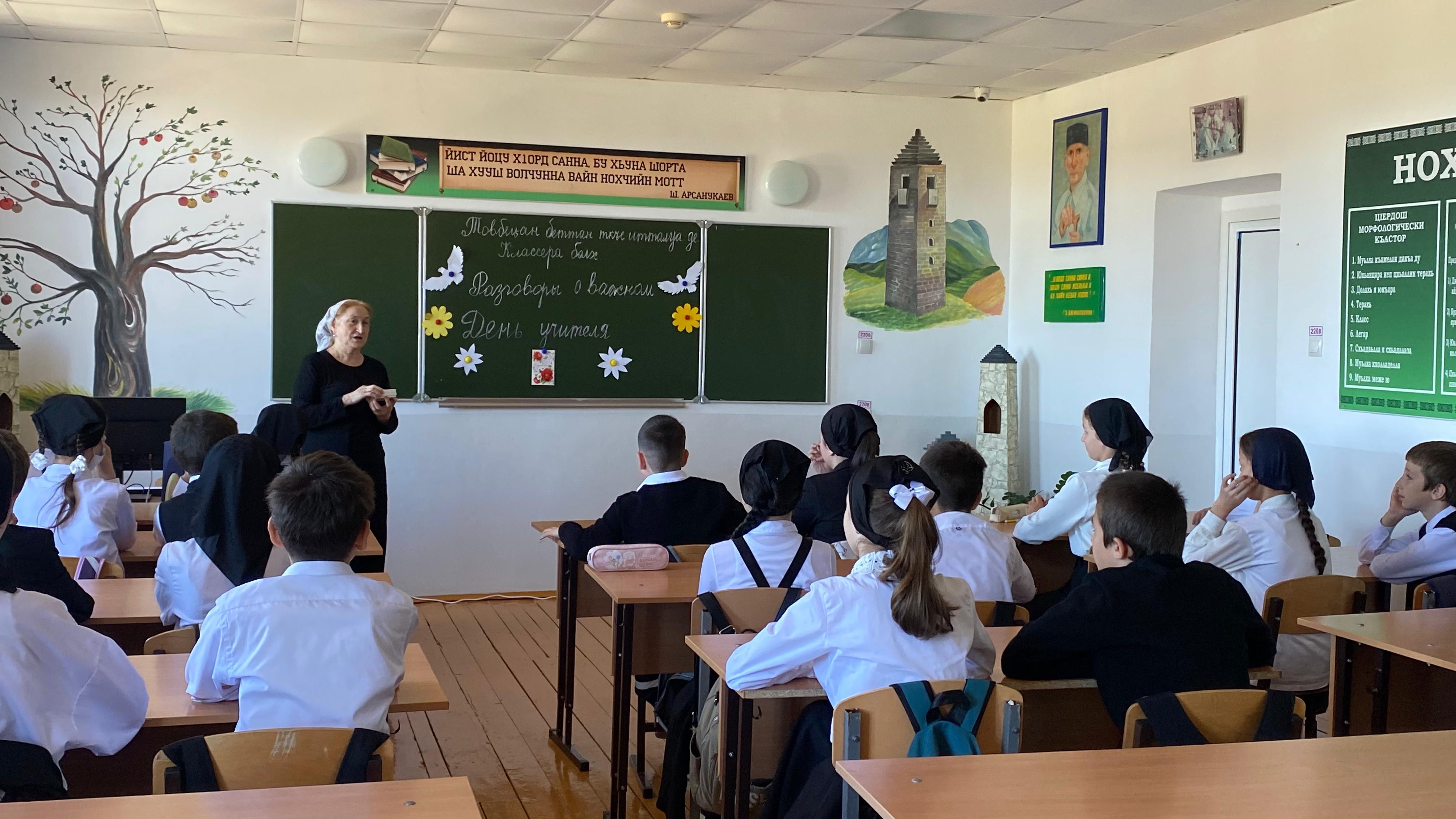 В МБОУ «Дышне-Веденская СОШ им. Загаева А.А.» состоялись очередные внеурочные занятия «Разговоры о важном» на тему: «День учителя».