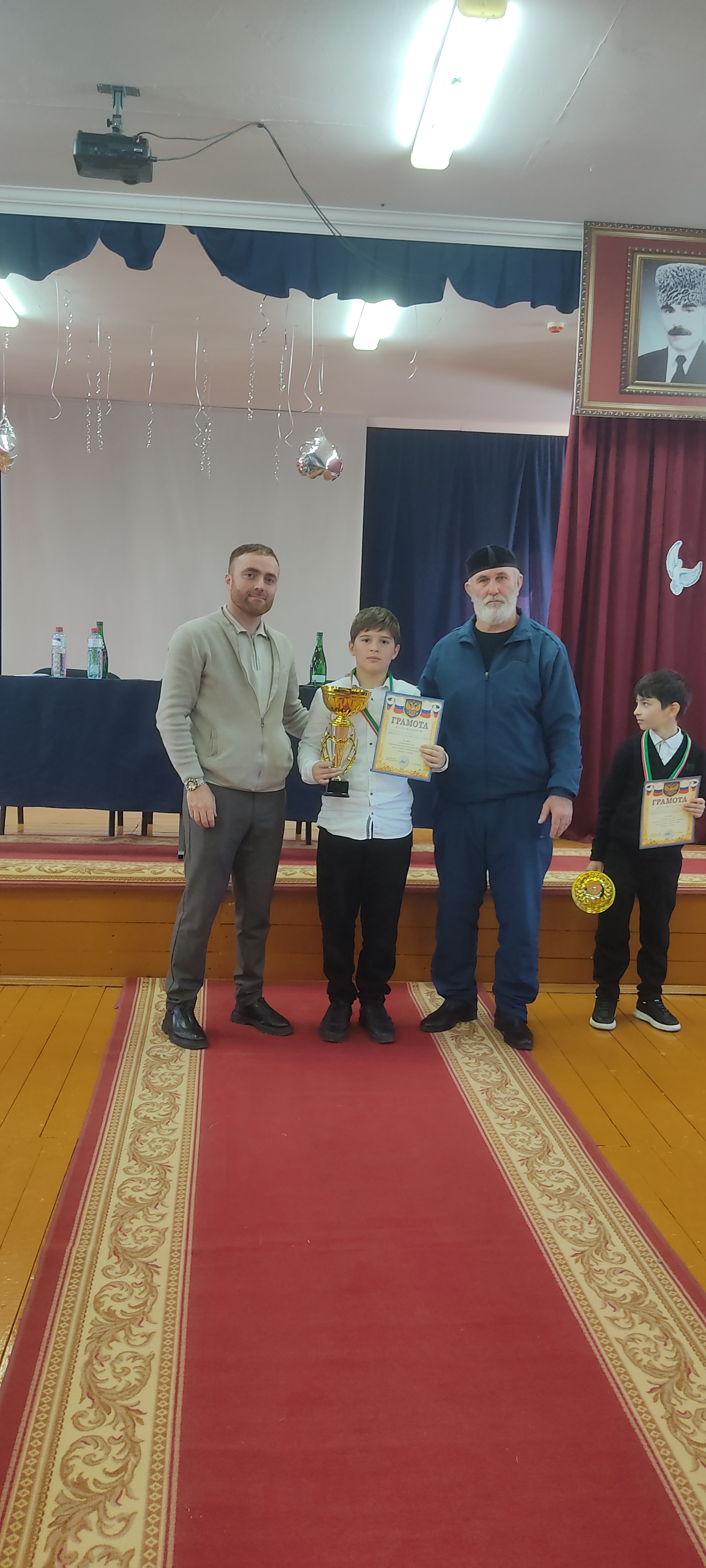 Итоги соревнований:1-ая возрастная группа (1-6 классы)1 место заняла Баширов Исмаил – ученик МБОУ «Дышне-Веденская СОШ им. Загаева А.А»,2 место- Садулаев Хизир – ученик МБОУ «Верхатойская СОШ»,3 место- Давлетмурзаев Магомед – ученик МБОУ «Элистанжинская СОШ им. Битимирова Х.Х.2-я возрастная группа (7-11 классы):1 место Бельтиев Ахмед – ученик МБОУ «Бенойская СОШ»,2 место Нингаева Хава – ученица МБОУ «Верхатойская СОШ»,3 место Хултигов Анзор ученик МБОУ «Махкетинская СОШ им. Ш.Хозуева».