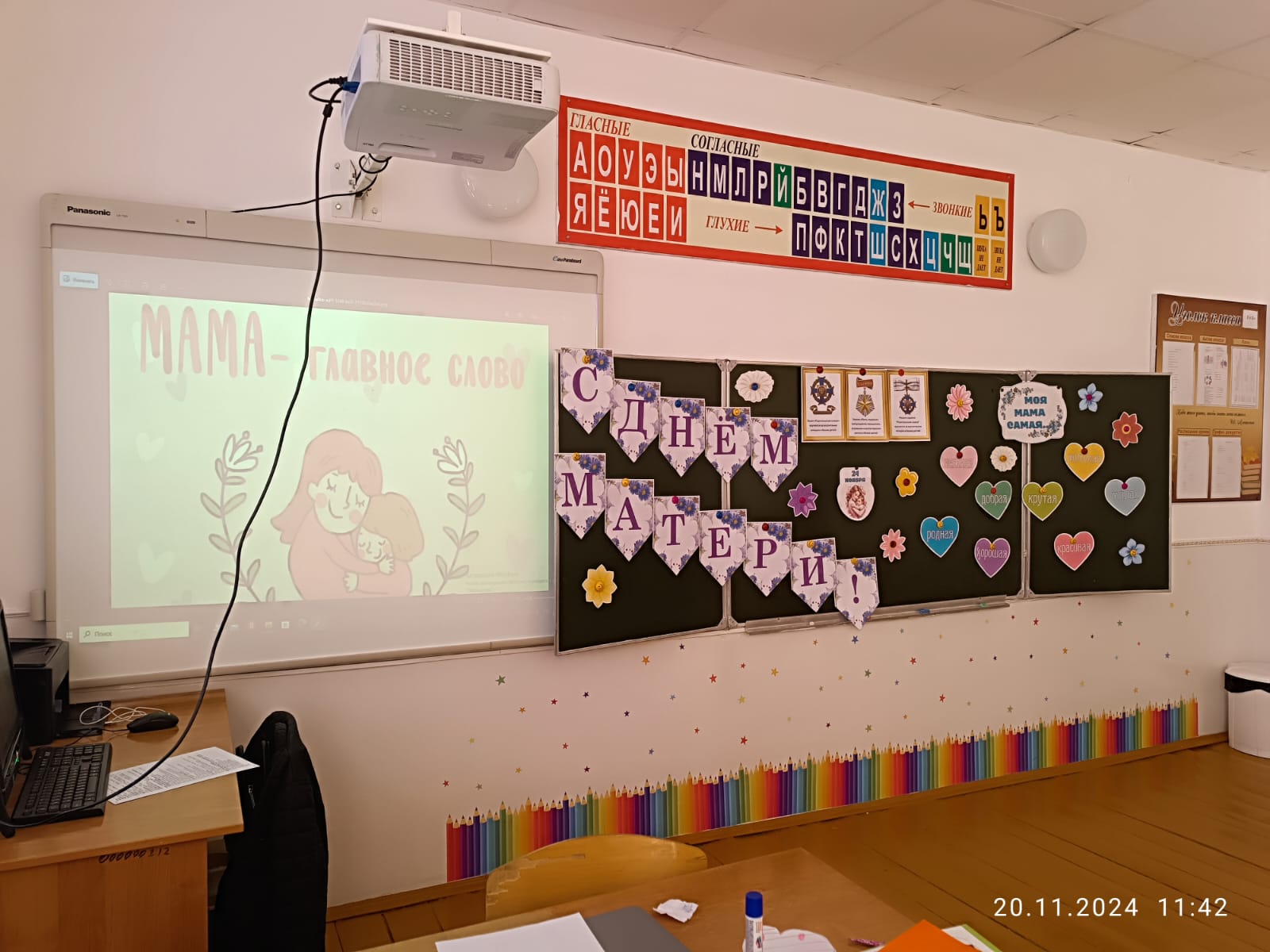 преддверии Дня матери в школе проходят классные часы, беседы, мероприятия.. Уже стало традицией в последнее воскресенье ноября отмечать День Матери. В этот день принято отдавать должное материнскому труду и бескорыстной жертве матерей ради блага своих детей. Невозможно поспорить с тем, что это праздник вечности. Из поколения в поколение для каждого человека мама — самый главный человек в жизни. Становясь матерью, женщина открывает в себе лучшие качества: доброту, любовь, заботу и терпение. День Матери — это тёплый, сердечный праздник. И сколько бы хороших, добрых слов не было сказано мамам, лишними они никогда не будут.