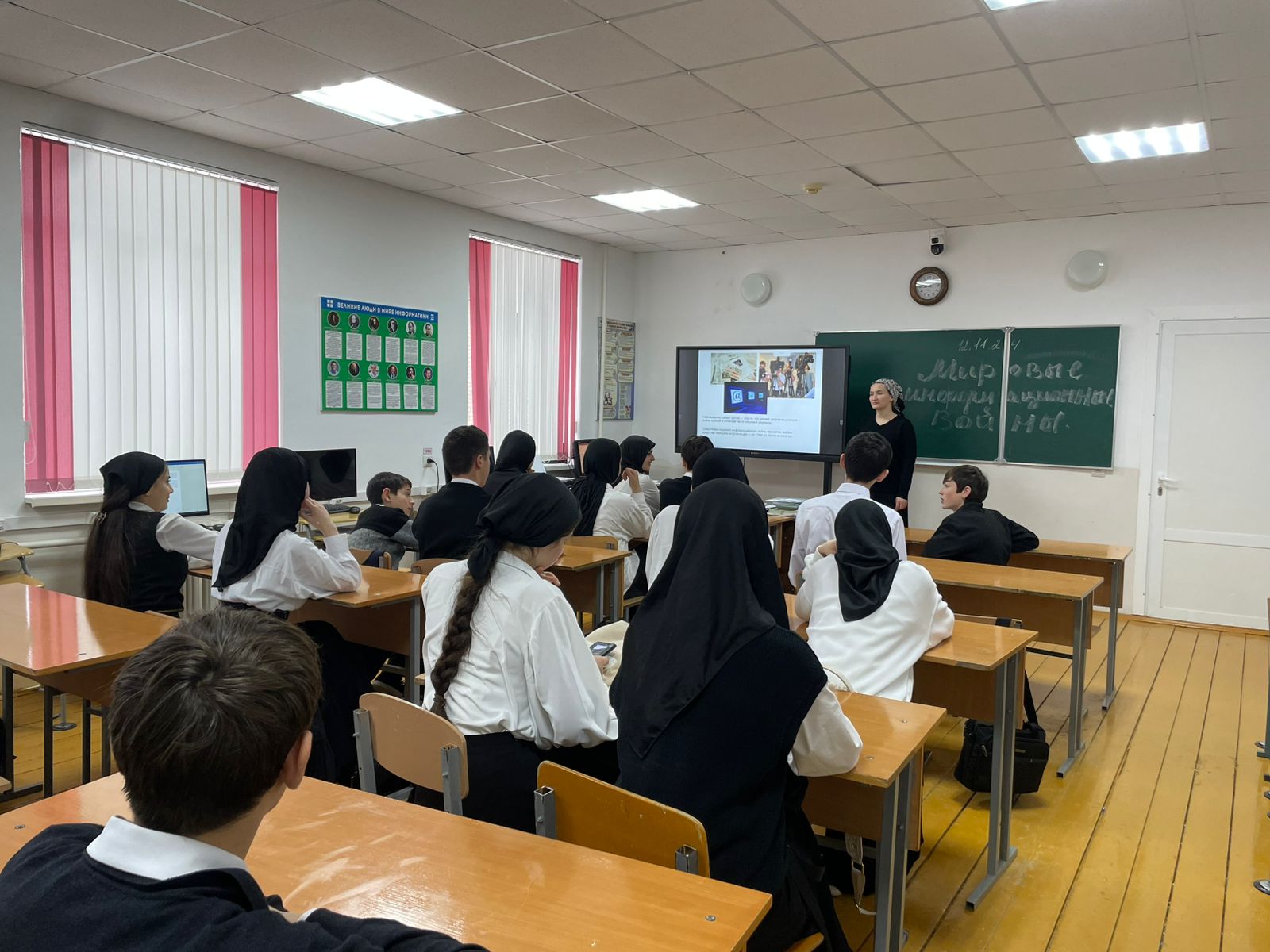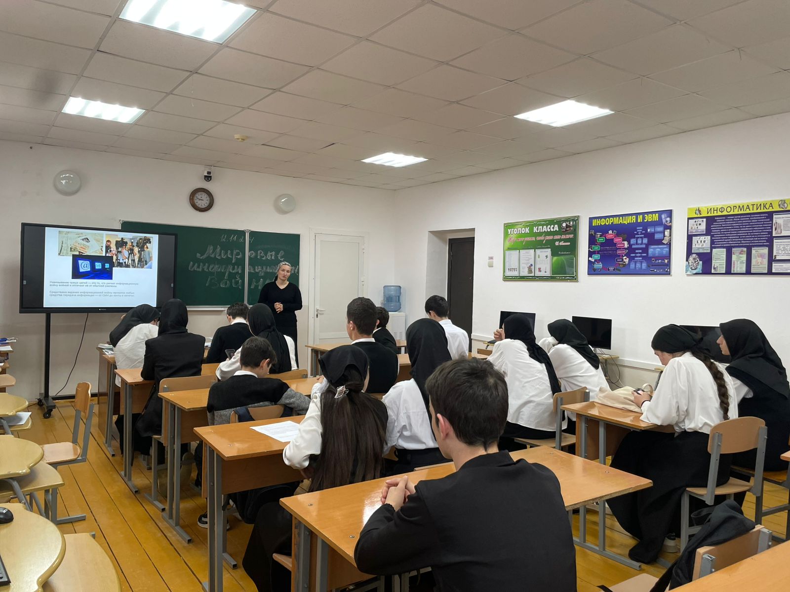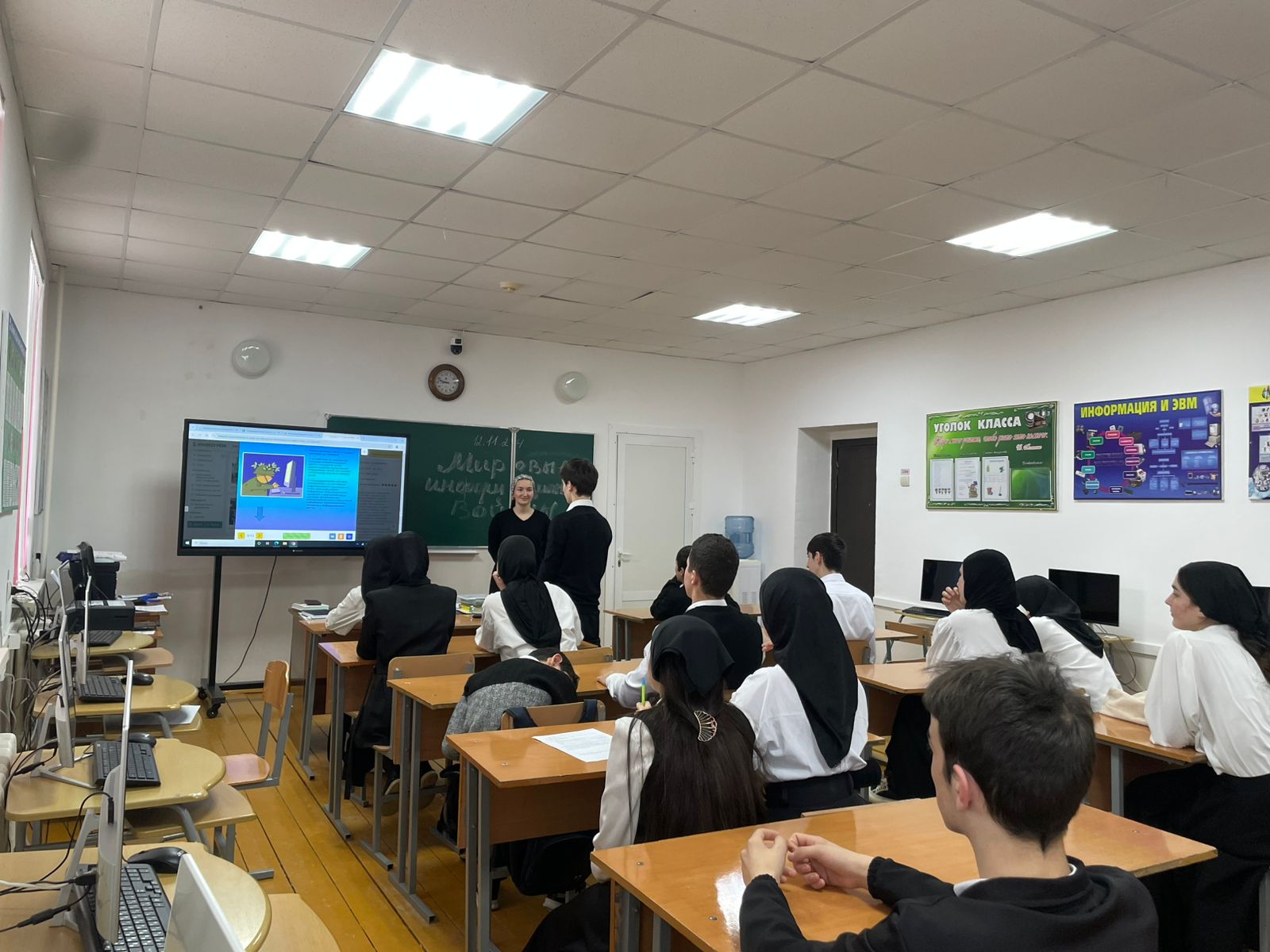 12.11. 2024 года в МБОУ "Дышне-Веденская СОШ им. Загаева А.А.» в рамках федерального проекта «Успех каждого ребёнка» нацпроекта «Образование» учитель информатики - Гацаева Равзет Обушайховна провела мероприятие в 9 классе на тему: «Мировые информационные войны».