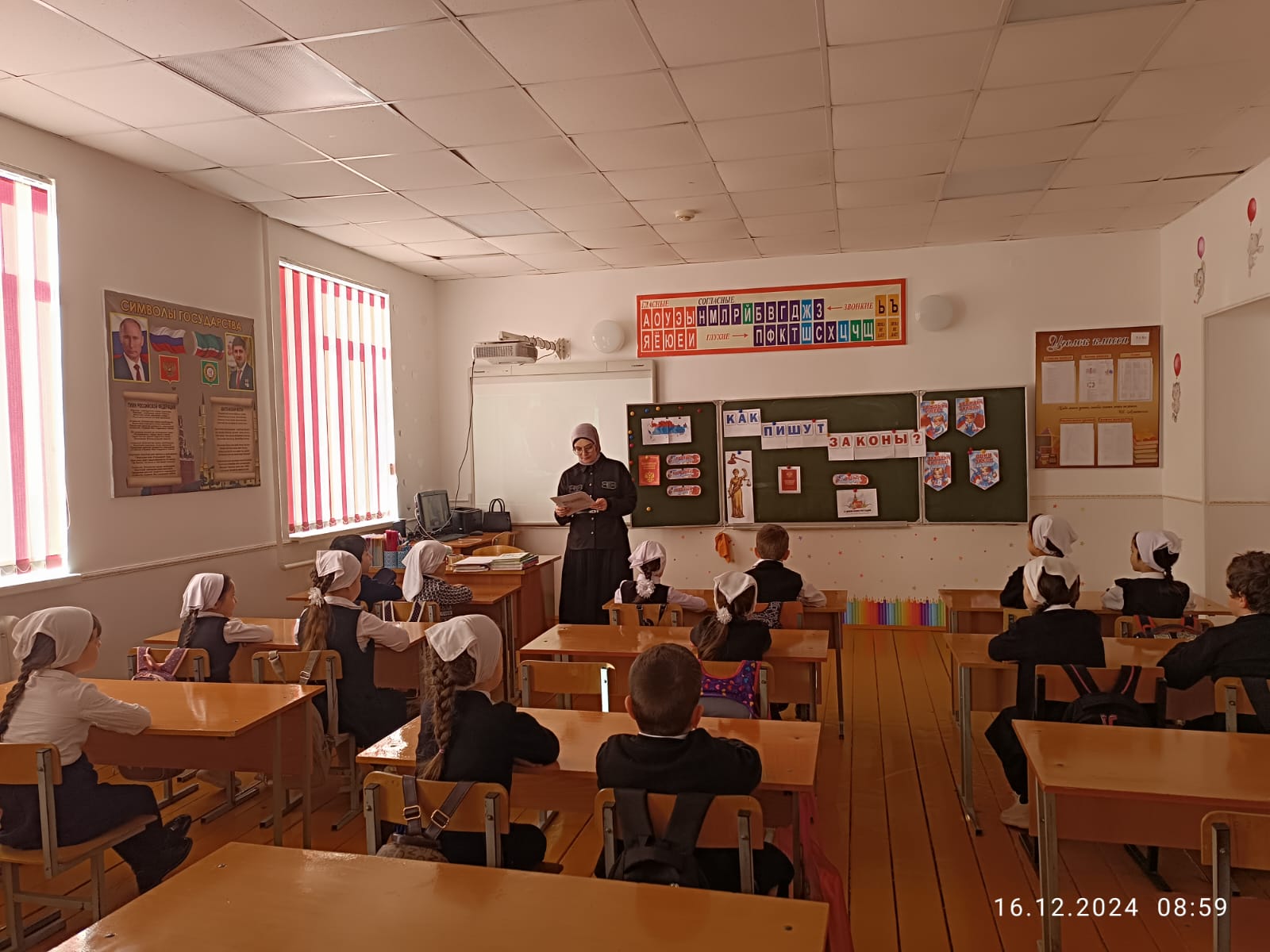 В МБОУ «Дышне-Веденская СОШ им. Загаева А.А.» состоялись очередные внеурочные занятия «Разговоры о важном» на тему: «Как пишут законы?».