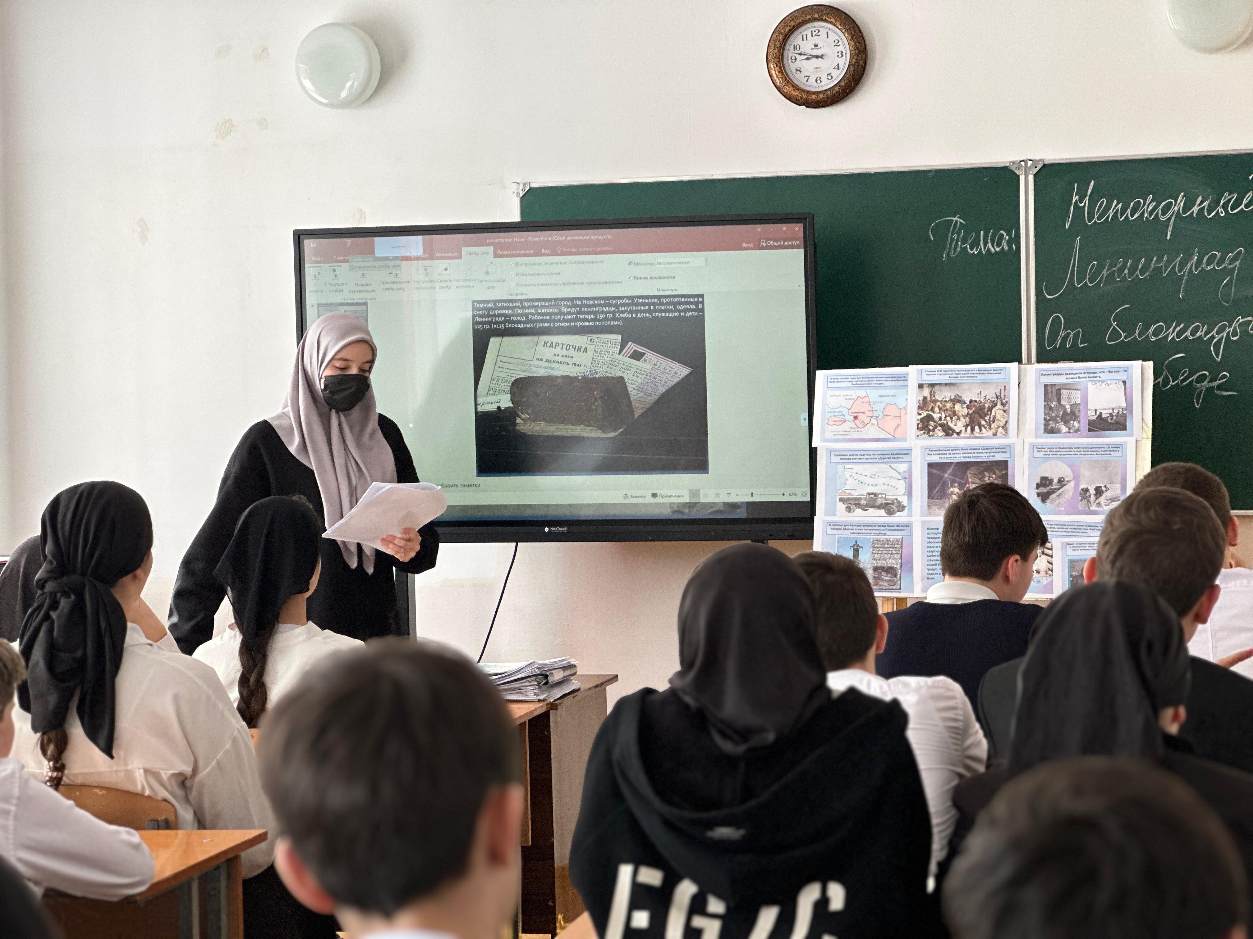 27.01.202527.01.2025 г. В МБОУ "Дышне-Веденская СОШ им. Загаева А.А." учитель истории Дунаева Хава Рашидовна провела открытый урок на тему: «Непокорный Ленинград, от блокады К Победе.»
