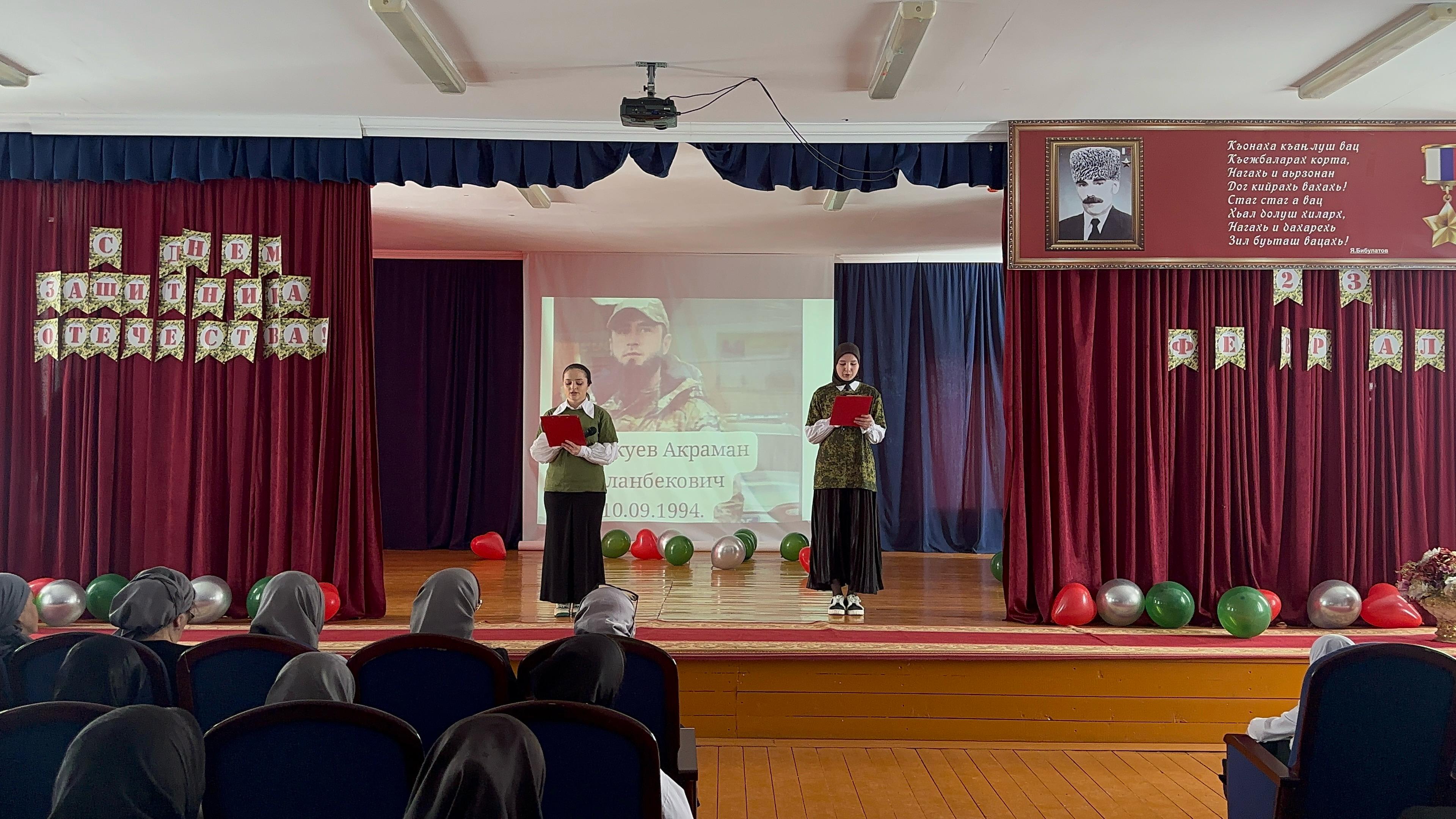 В МБОУ «Дышне-Веденская СОШ им. Загаева А.А.». провели торжественное мероприятие, посвященное Дню защитника Отечества. Событие собрало учащихся, преподавателей и родителей, создав атмосферу патриотизма и гордости за нашу Родину.