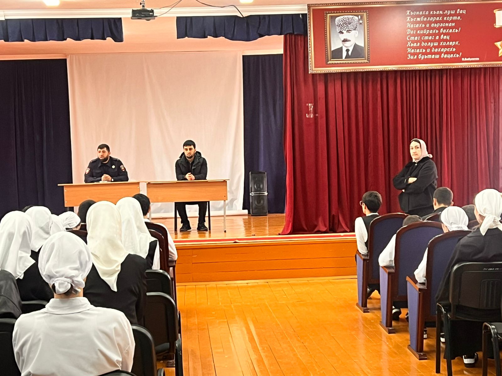 Встречу провёл инспектор ПДН ОМВД России, лейтенант полиции Сайдулаев М.У., совместно с заместителем директора по ИКТ, заместителем директора по ВР.